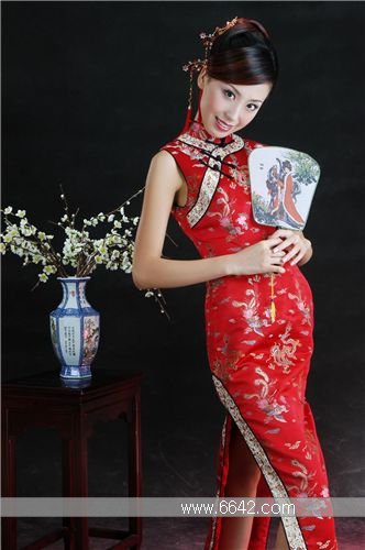 and hips to the lower hem. Qipao completely shows off a woman's